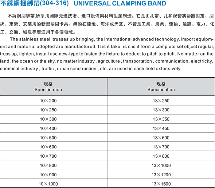 不锈钢捆绑带(304-316)