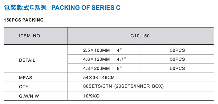 首页 产品中心 尼龙扎线带系列 包装款式C系列 包装款式C系列150PCS PACKING