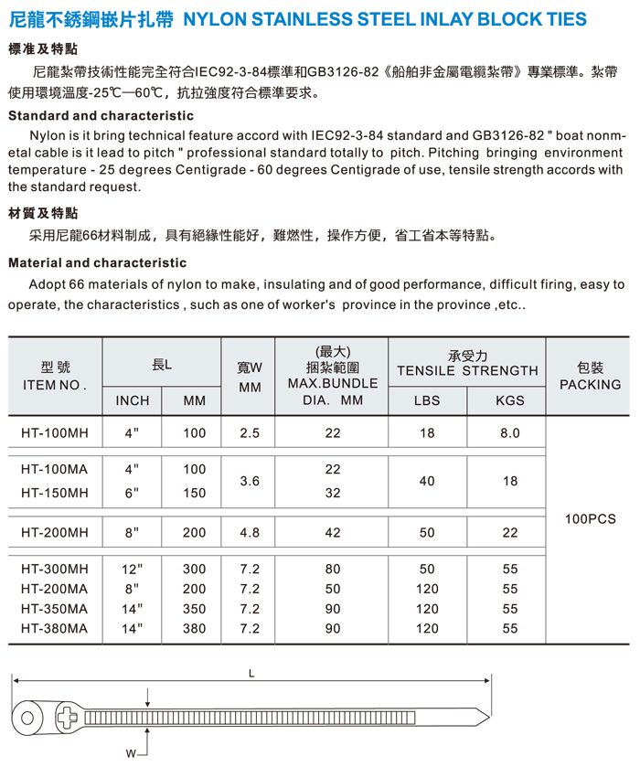 尼龙不锈钢嵌片扎带2