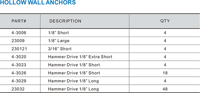 HOLLOW WALL ANCHORS