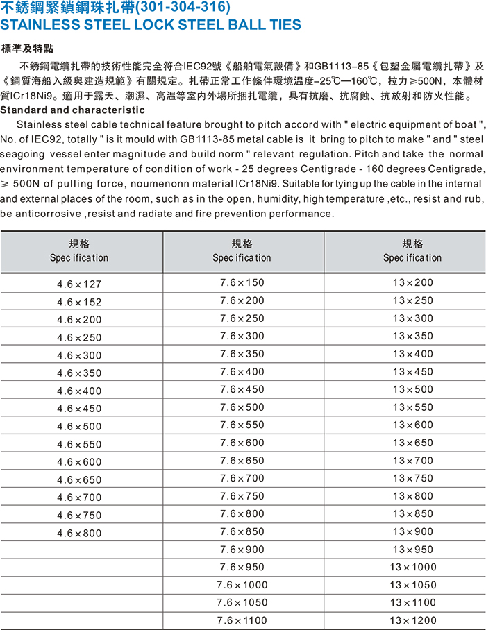 不锈钢紧锁钢珠扎带